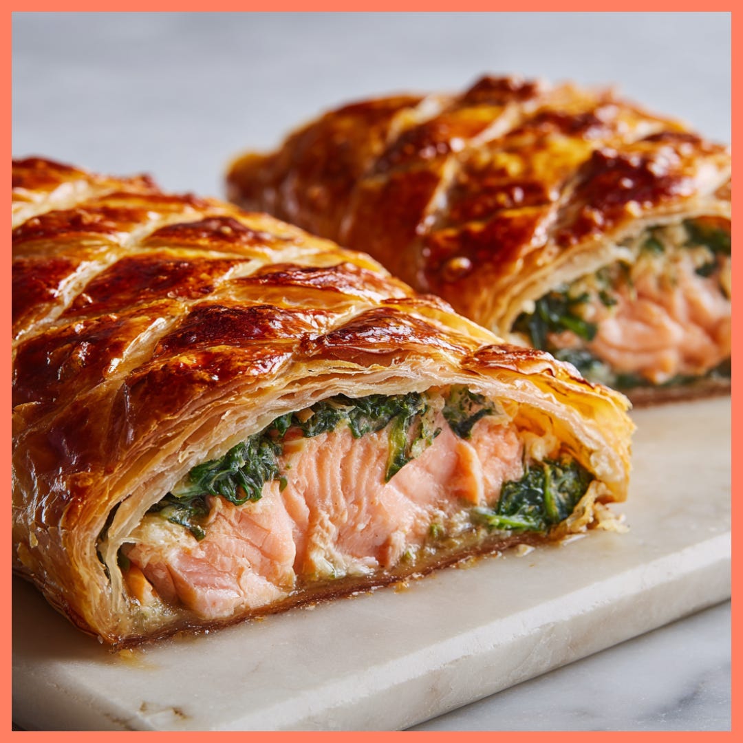 But these days, the Wellington has had a bit of a glow-up. You’ll find versions made with salmon, mushrooms, lentils, even sweet potatoes! Once you realize the technique, layered filling, flavorful center, all wrapped in buttery pastry, you start to see how versatile (and delicious) it can be.