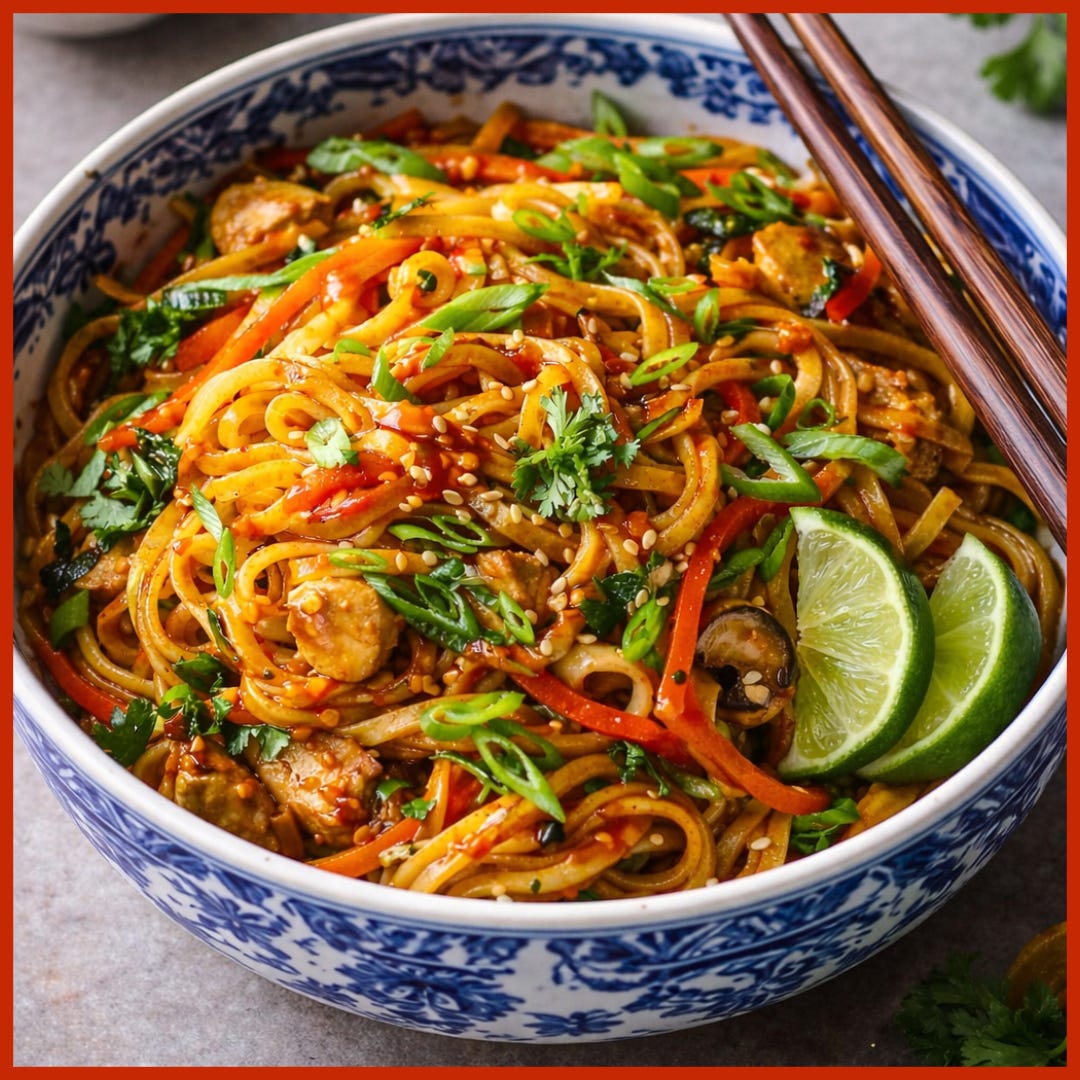 There’s a certain kind of meal that many of us love ordering out — spicy noodles, glossy sauce, big flavor, but rarely think to make at home. It feels like something best left to restaurants, or at least to cooks who already know their way around those flavors.