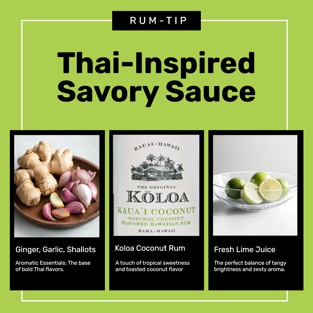 Ever wondered what to do with those golden-brown bits left in the pan after cooking? That’s not stuck-on food—it’s fond, and it’s pure flavor gold. When deglazed with a splash of Kōloa Coconut Rum, those caramelized bits turn into a creamy, rich, Thai-inspired sauce you’ll want to drizzle over rice, noodles, proteins… everything.