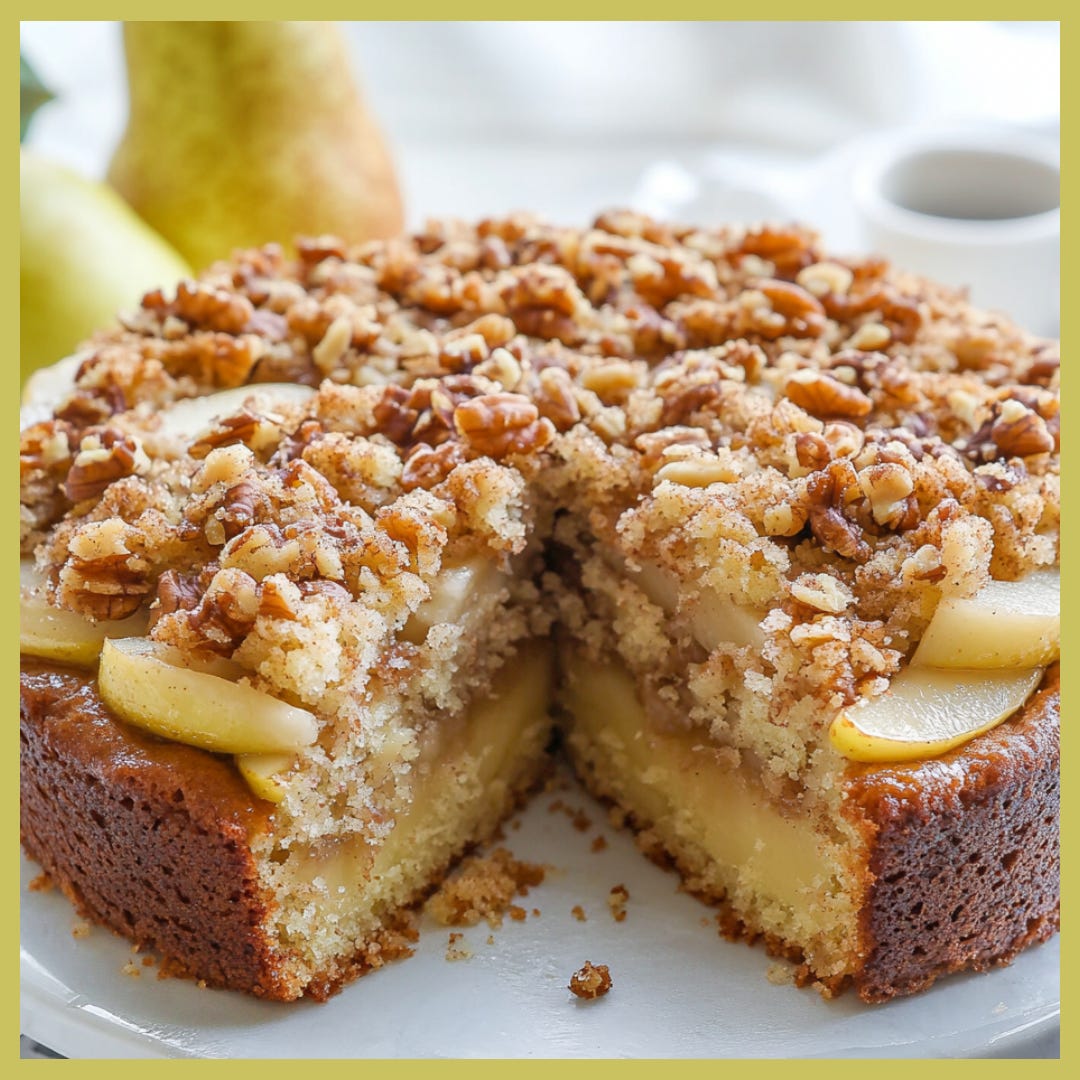 The sour cream keeps it incredibly moist, the pears melt into each bite, and the walnuts add just the right contrast. It’s a cake that feels indulgent but never too sweet, perfect with a strong cup of coffee, a chilly morning, or as the centerpiece of your next weekend brunch.